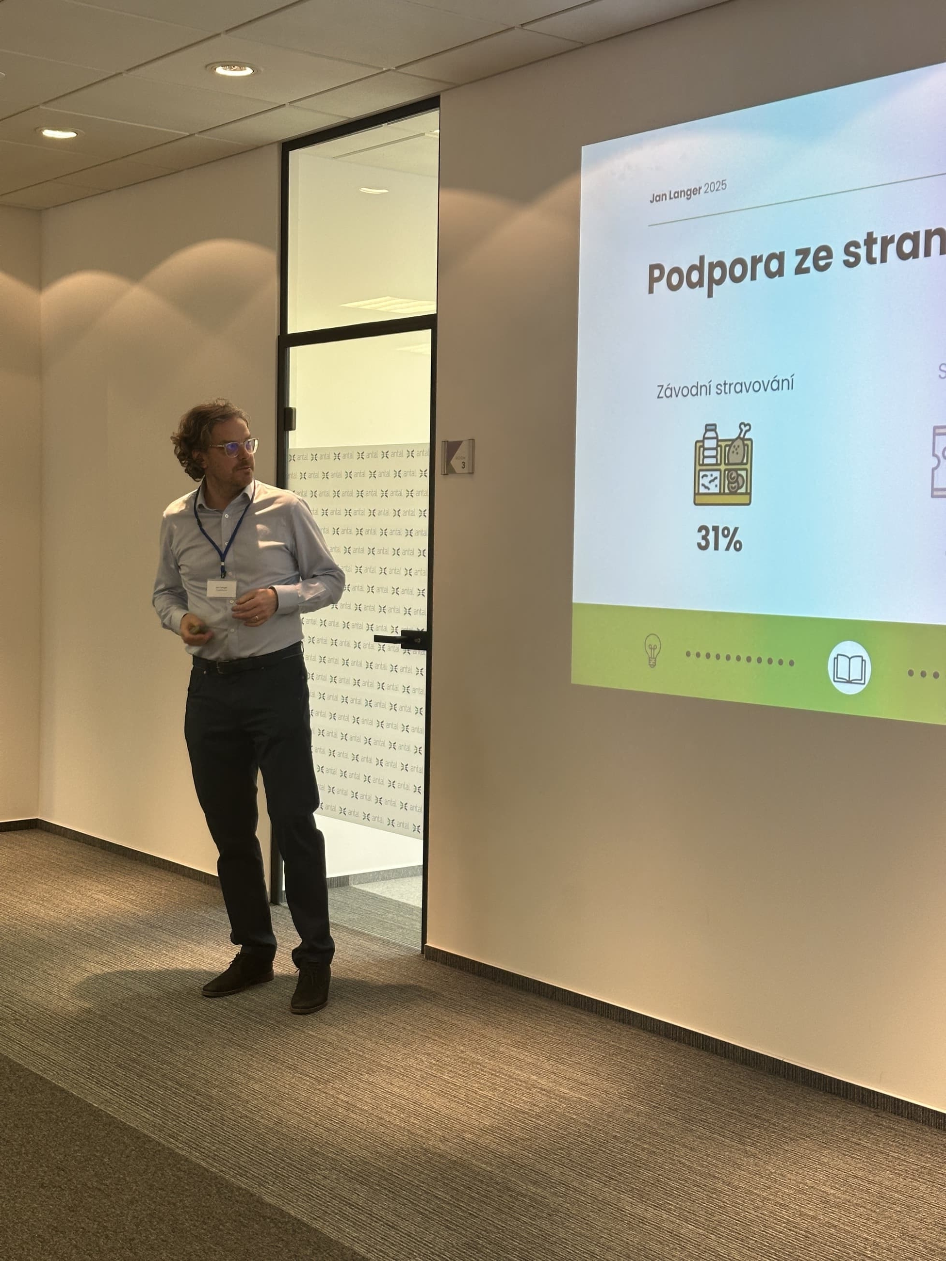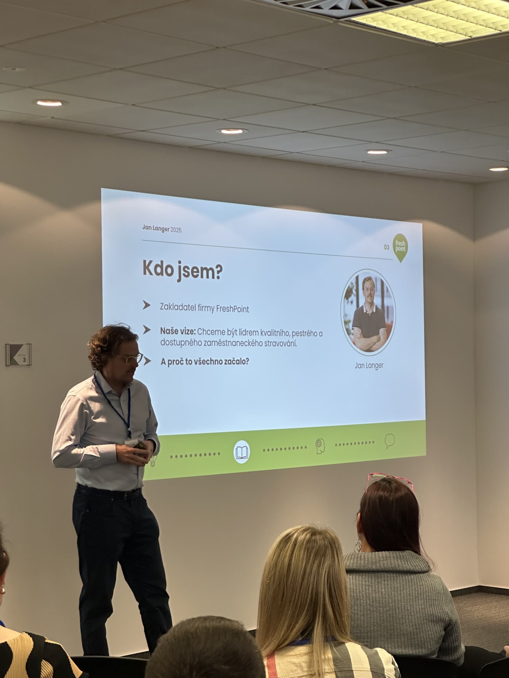 Jan Langer (CEO, FreshPoint), který se zaměřil na význam kvalitního stravování pro zaměstnance na home office i v kanceláři a jeho roli při motivaci k návratu do pracovního prostředí.
