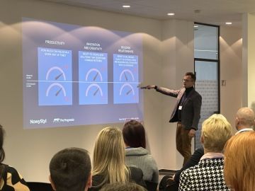 Petr Špaček (Sales Director, Nowy Styl), který hovořil o tom, jak vytvořit efektivní a inspirativní pracoviště, které podporuje pohodu i výkon zaměstnanců.